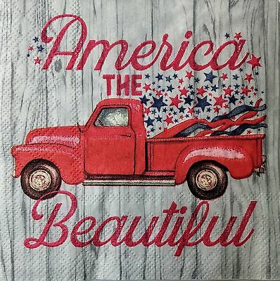 TWO Individual Paper Cocktail Decoupage Napkins-1525 America The Beautiful Truck