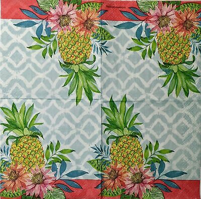 TWO Individual Paper Cocktail Decoupage Napkins - 1528 Tropical Pineapple