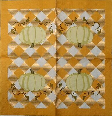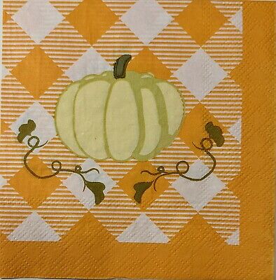 TWO Individual Paper Cocktail Decoupage Napkins- 1563 Orange Check White Pumpkin
