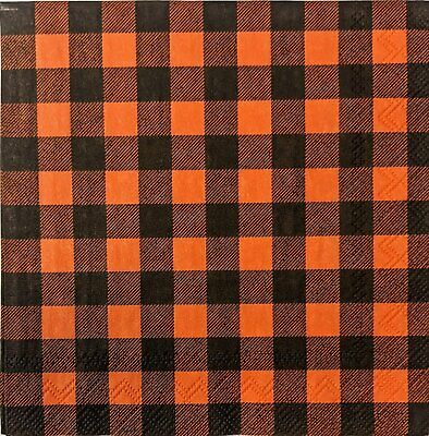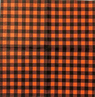 TWO Individual Paper Cocktail Decoupage Napkins- 1593 Orange Black Buffalo Check