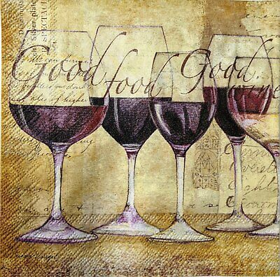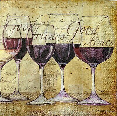 TWO Individual Paper Cocktail Decoupage Napkins- 1596 Vino Bellissimo Wine Glass