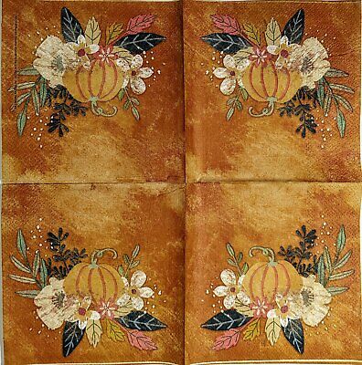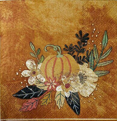 TWO Individual Paper Cocktail Decoupage Napkins- 1599 Autumn Pumpkin Centerpiece