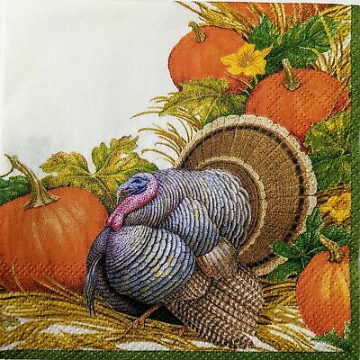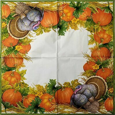 TWO Individual Paper Cocktail Decoupage Napkins-1652 Thanksgiving Turkey Harvest