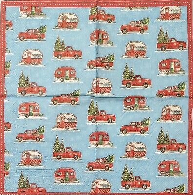 TWO Individual Paper Cocktail Decoupage Napkins- 1770 Christmas Trucks & Campers
