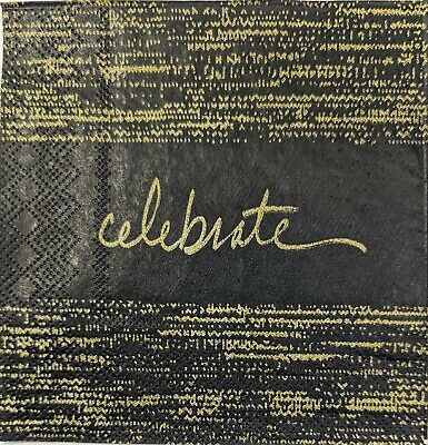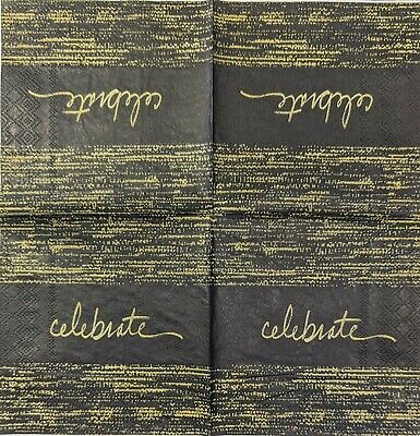 TWO Individual Paper Cocktail Decoupage Napkins - 1774 Celebrate Black & Gold