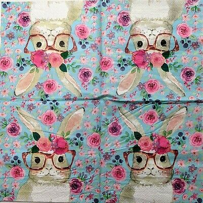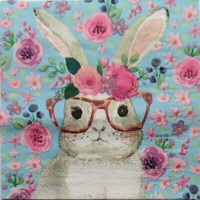 TWO Individual Paper Cocktail Decoupage Napkins - 1807 Bunny Flora with Glasses
