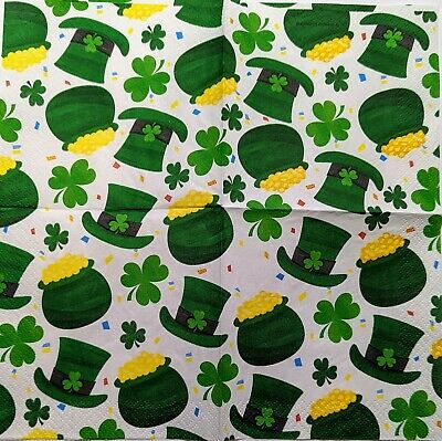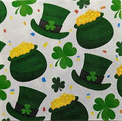 TWO Individual Paper Cocktail Decoupage Napkins - 1810 St Patrick's Pot of Gold
