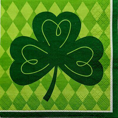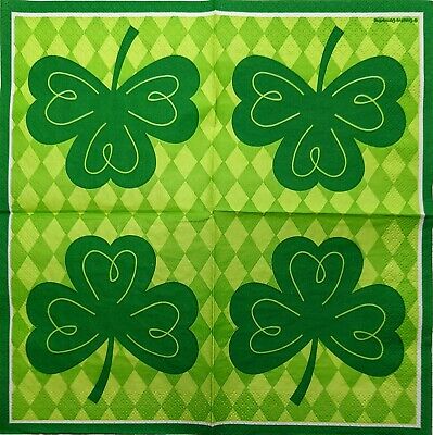 TWO Individual Paper Cocktail Decoupage Napkins - 1811 Harlequin Shamrocks