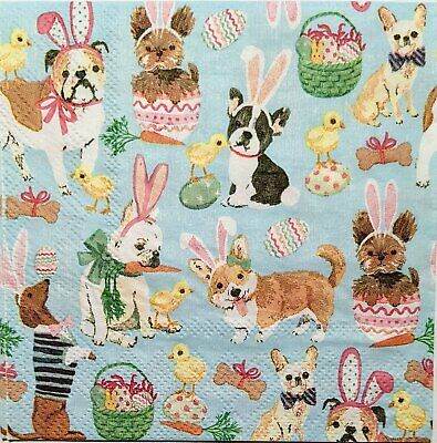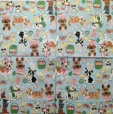 TWO Individual Paper Cocktail Decoupage Napkins - 1813 Easter Dog Party