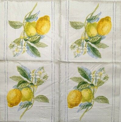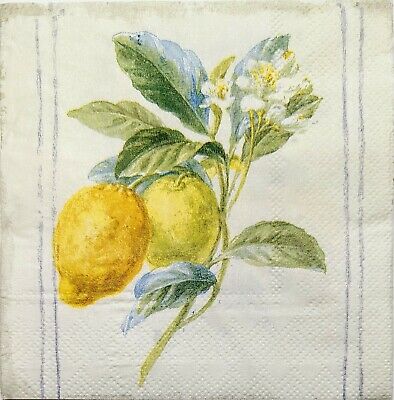 TWO Individual Paper Cocktail Decoupage Napkins - 1818 Lemon Branch on Cloth