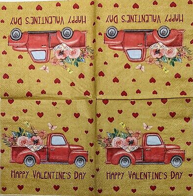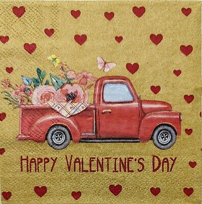TWO Individual Paper Cocktail Decoupage Napkins-1845 Happy Valentine's Day Truck