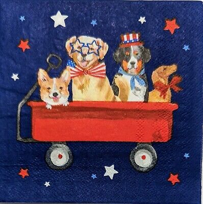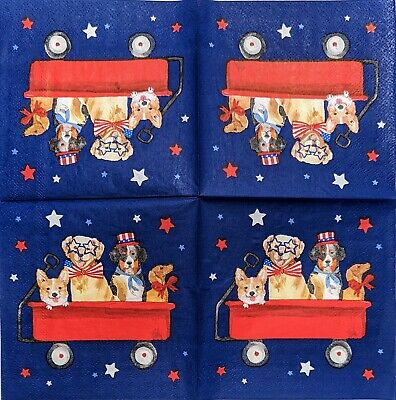 TWO Individual Paper Cocktail Decoupage Napkins - 1924 Patriotic Dog Wagon