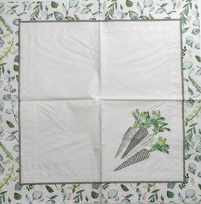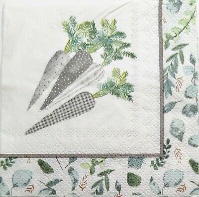TWO Individual Paper Cocktail Decoupage Napkins - 1936 Black & White Carrots