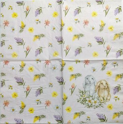 TWO Individual Paper Cocktail Decoupage Napkins - 1938 Floppy Ear Easter Bunnies