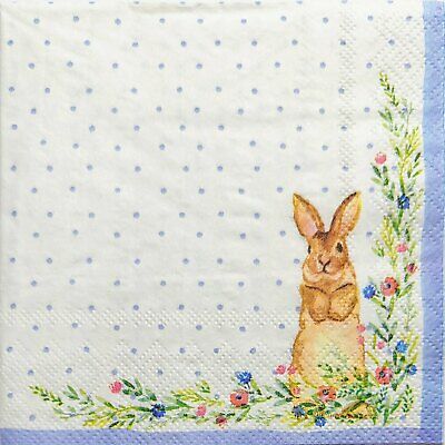 TWO Individual Paper Cocktail Decoupage Napkins - 1939 Polka Dots Flowers Bunny