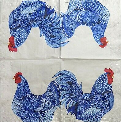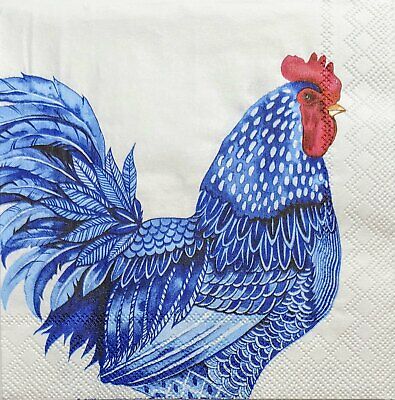 TWO Individual Paper Cocktail Decoupage Napkins - 1941 Blue Rooster