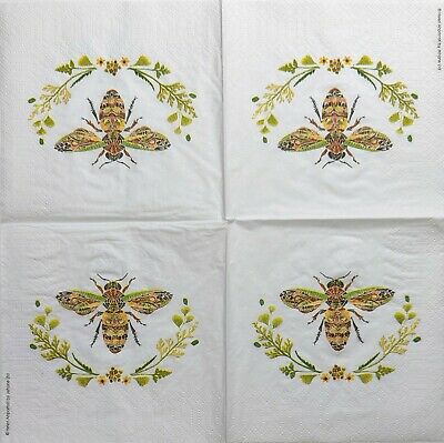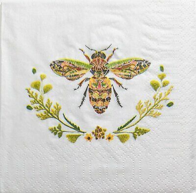 TWO Individual Paper Cocktail Decoupage Napkins - 1945 Green Bee Wreath