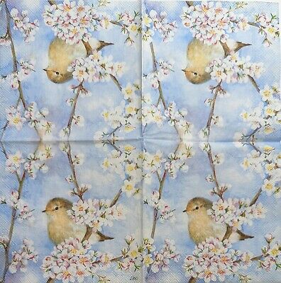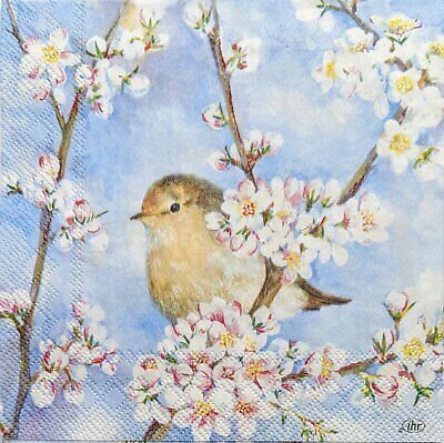 TWO Individual Paper Cocktail Decoupage Napkins - 1946 Bird in Spring Harmony