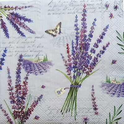 TWO Individual Paper Cocktail Decoupage Napkins - 1949 Viola Lavender Flowers