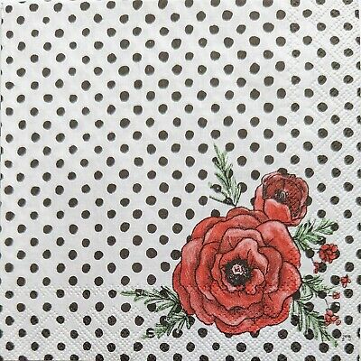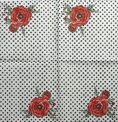 TWO Individual Paper Cocktail Decoupage Napkins - 1951 Red Peonies & Polka Dots