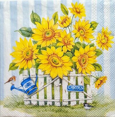 TWO Individual Paper Cocktail Decoupage Napkins - 1952 Sunflower Garden