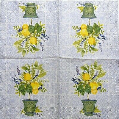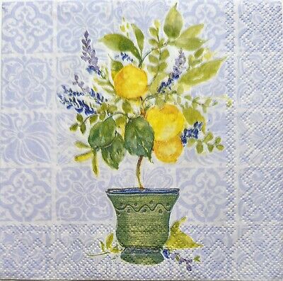 TWO Individual Paper Cocktail Decoupage Napkins - 1953 Potted Lemon Tree Plant