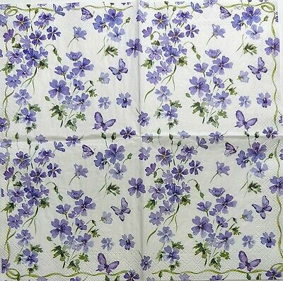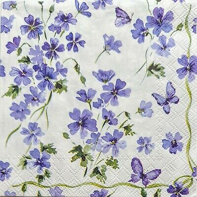 TWO Individual Paper Cocktail Decoupage Napkins - 1958 Purple Spring Flowers