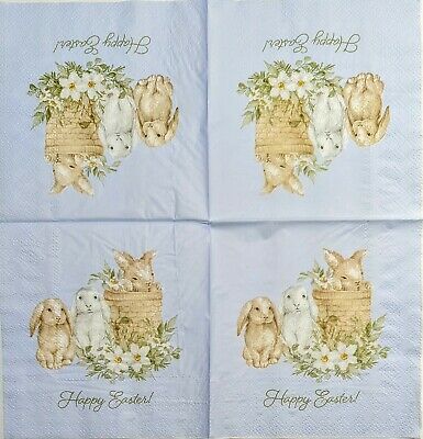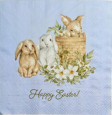 TWO Individual Paper Cocktail Decoupage Napkins - 1983 Happy Easter Floppy Ears