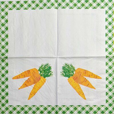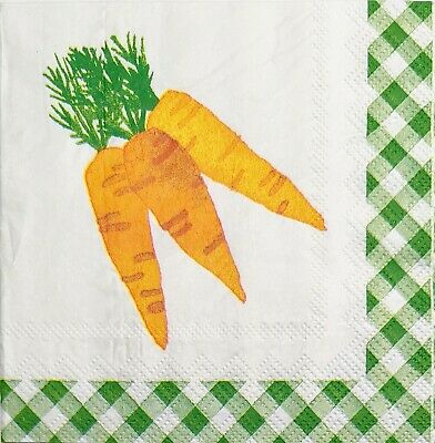 TWO Individual Paper Cocktail Decoupage Napkins - 1984 Carrots w/ Green Gingham