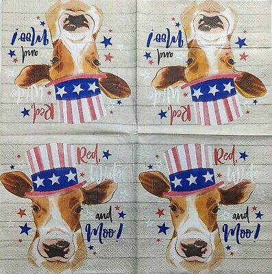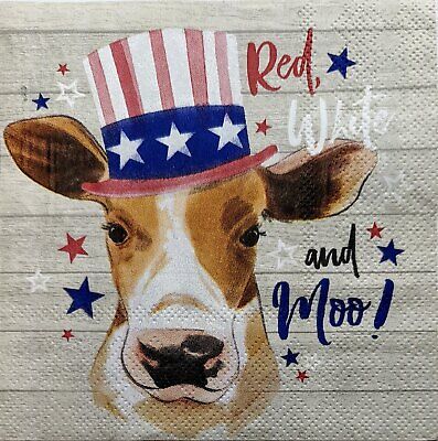 TWO Individual Paper Cocktail Decoupage Napkins - 1989 Red White & Moo Cow