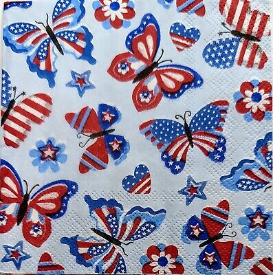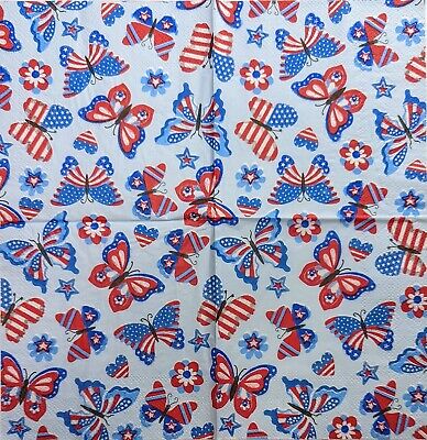TWO Individual Paper Cocktail Decoupage Napkins - 1990 Patriotic Butterflies