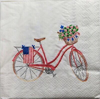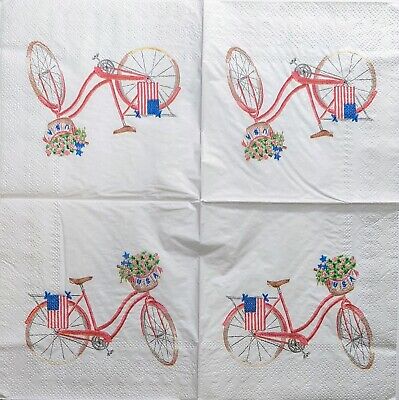 TWO Individual Paper Cocktail Decoupage Napkins - 1991 Red Bicycle with Flag