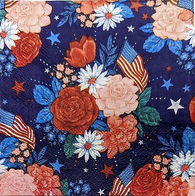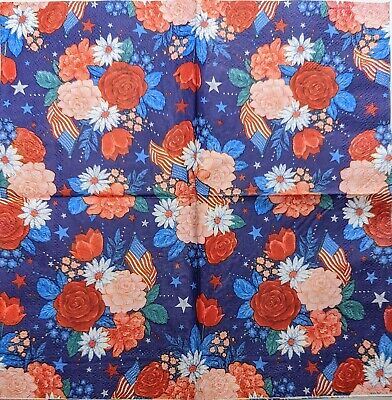 TWO Individual Paper Cocktail Decoupage Napkins - 1993 4th of July Flowers