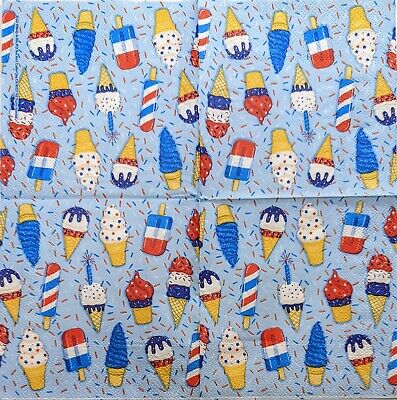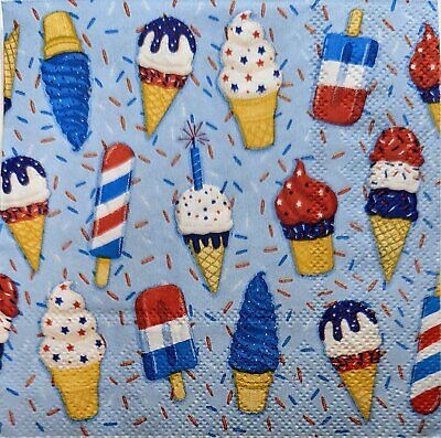 TWO Individual Paper Cocktail Decoupage Napkins - 1994 Patriotic Ice Cream