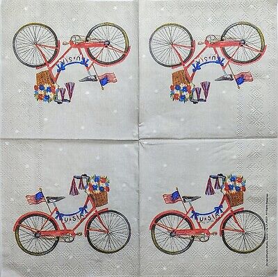 TWO Individual Paper Cocktail Decoupage Napkins - 1995 4th of July Bicycle