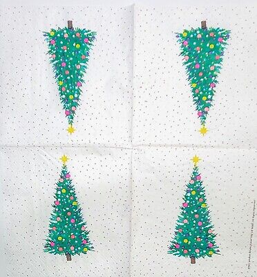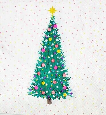 TWO Individual Paper Cocktail Decoupage Napkins - 2038 Colorful Christmas Tree