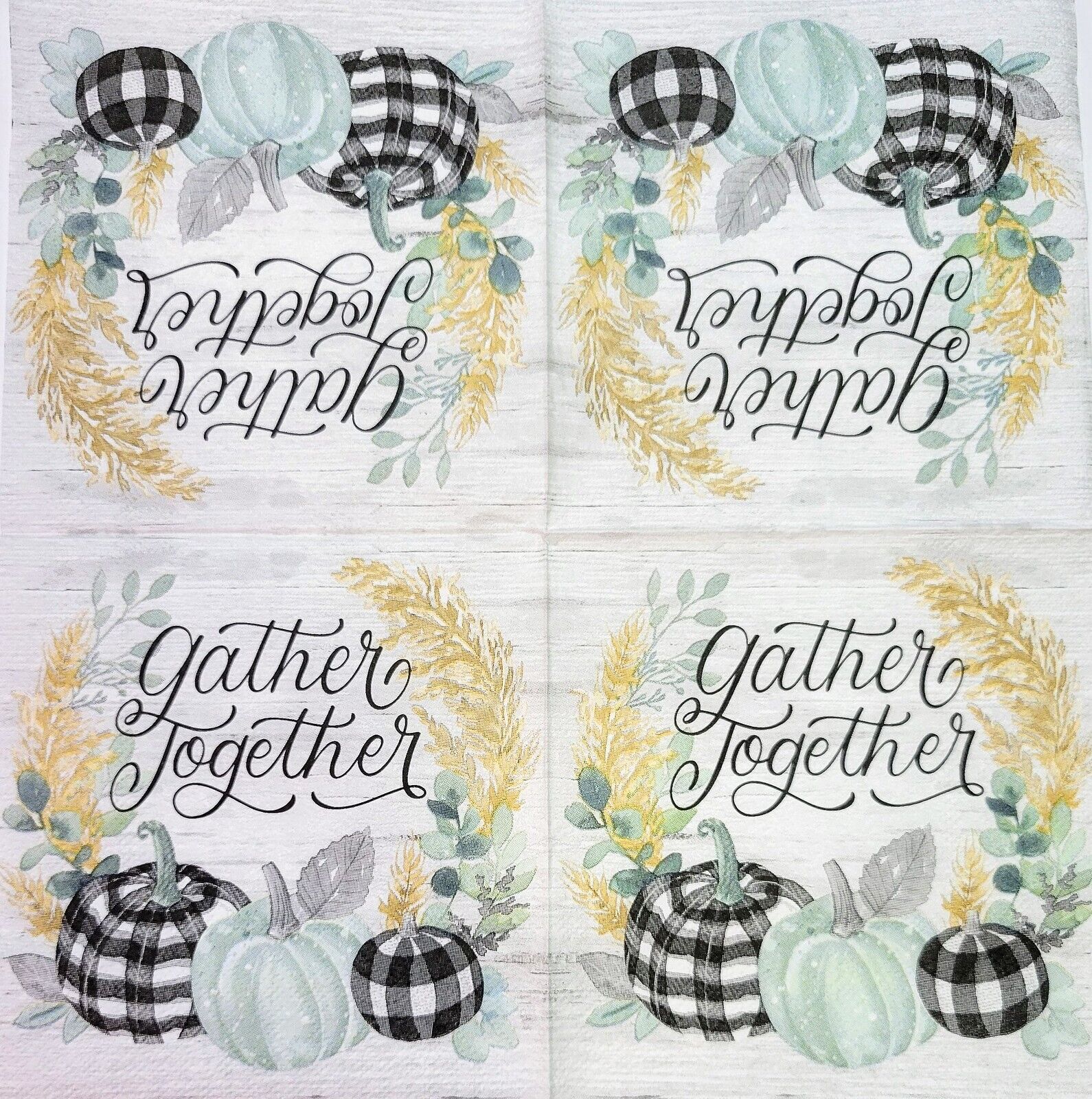 TWO Individual Paper Cocktail Decoupage Napkins - 2167 Gather Together Pumpkins