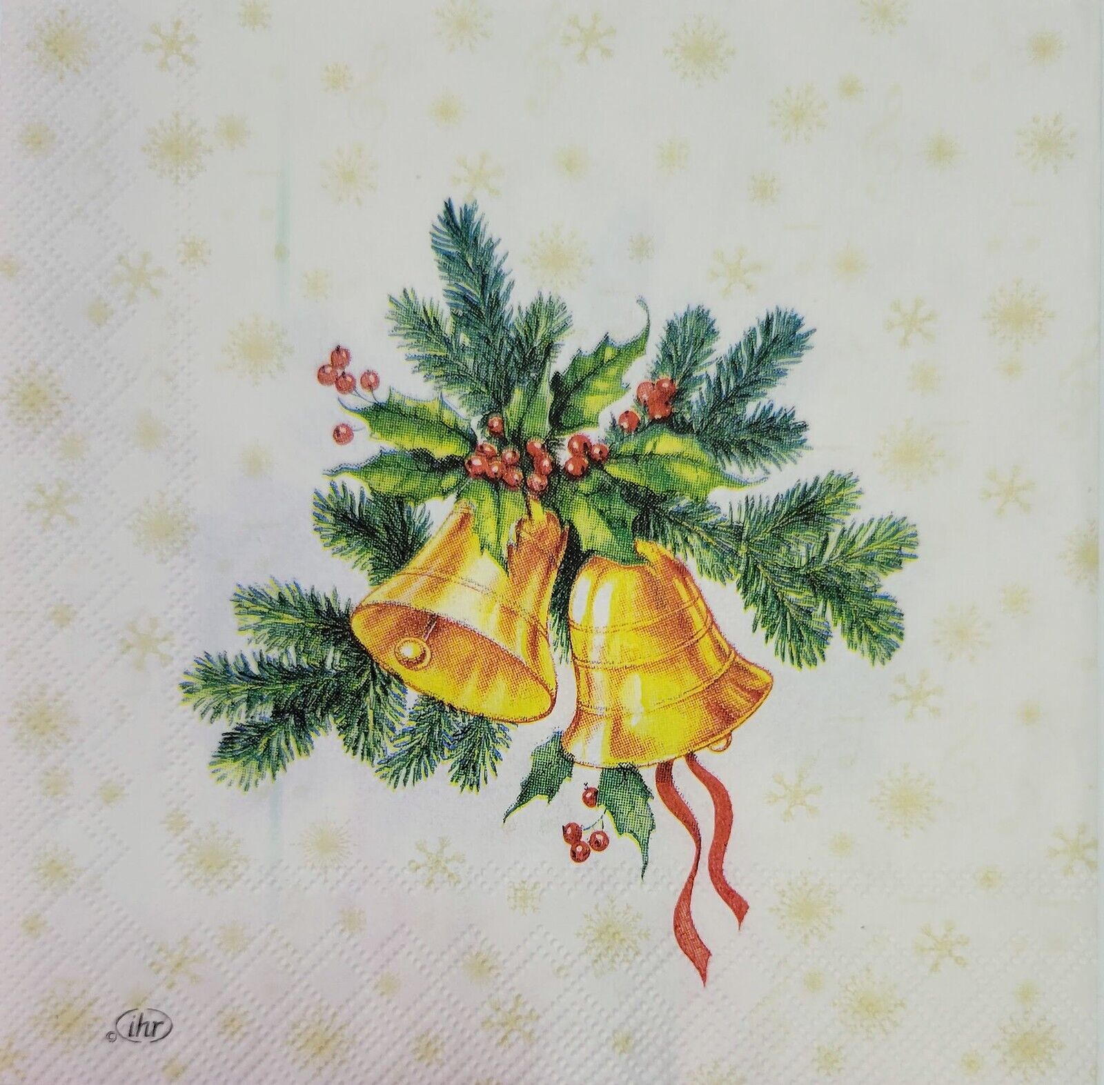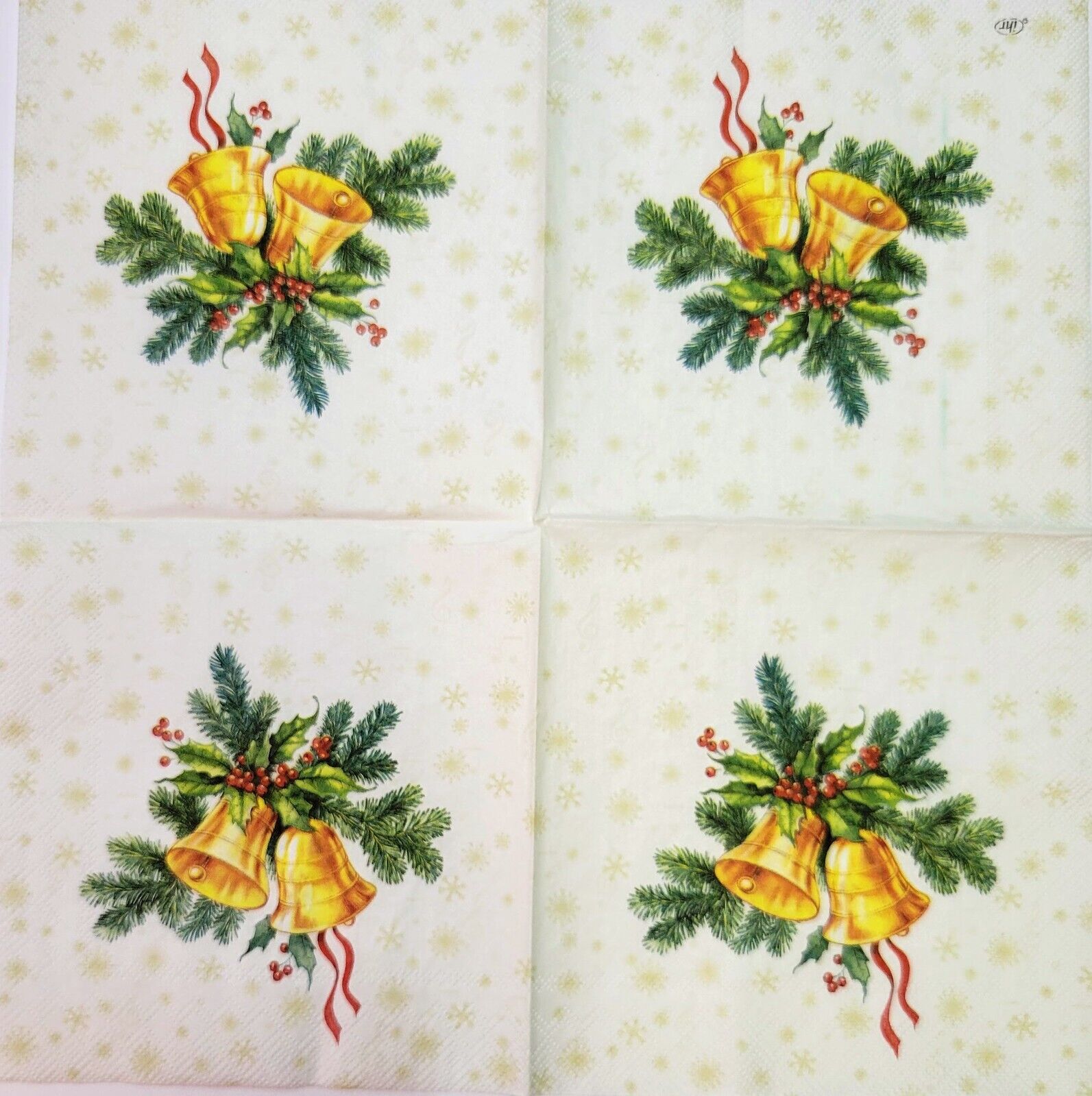 TWO Individual Paper Cocktail Decoupage Napkins - 2179 Festive Christmas Bells