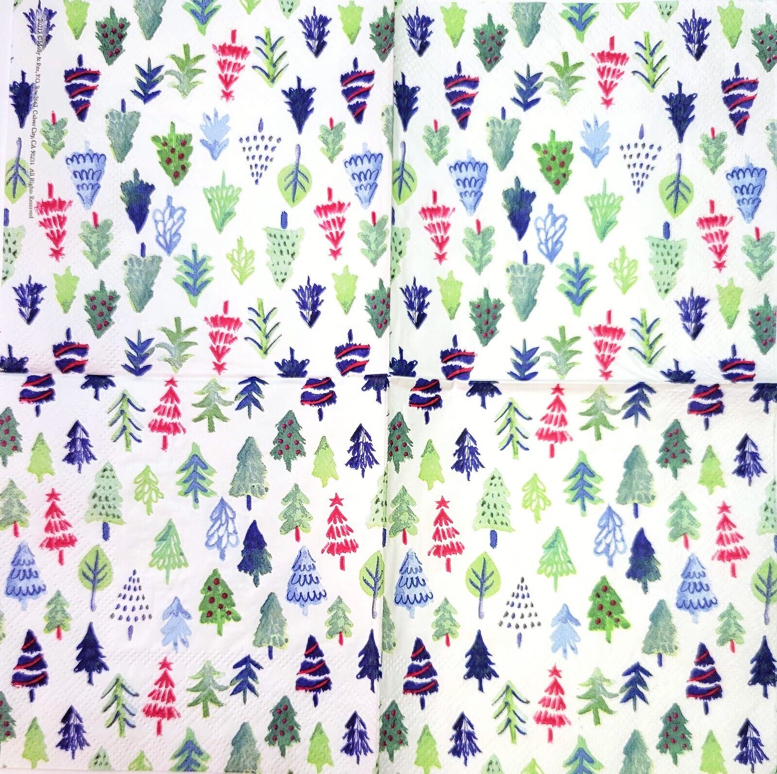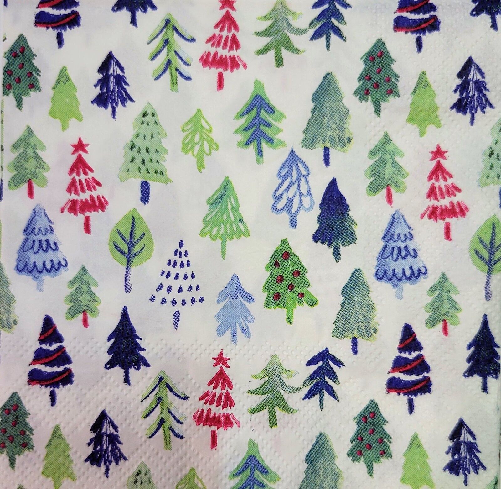 TWO Individual Paper Cocktail Decoupage Napkins - 2182 Holiday Tree Forest