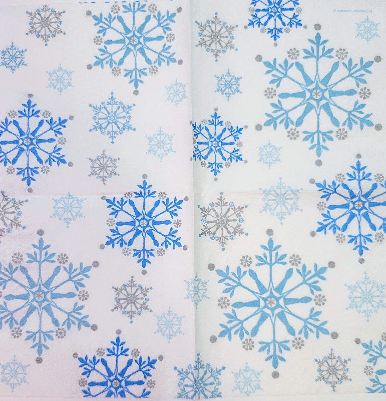 TWO Individual Paper Cocktail Decoupage Napkins - 2188 Winter Snowflakes