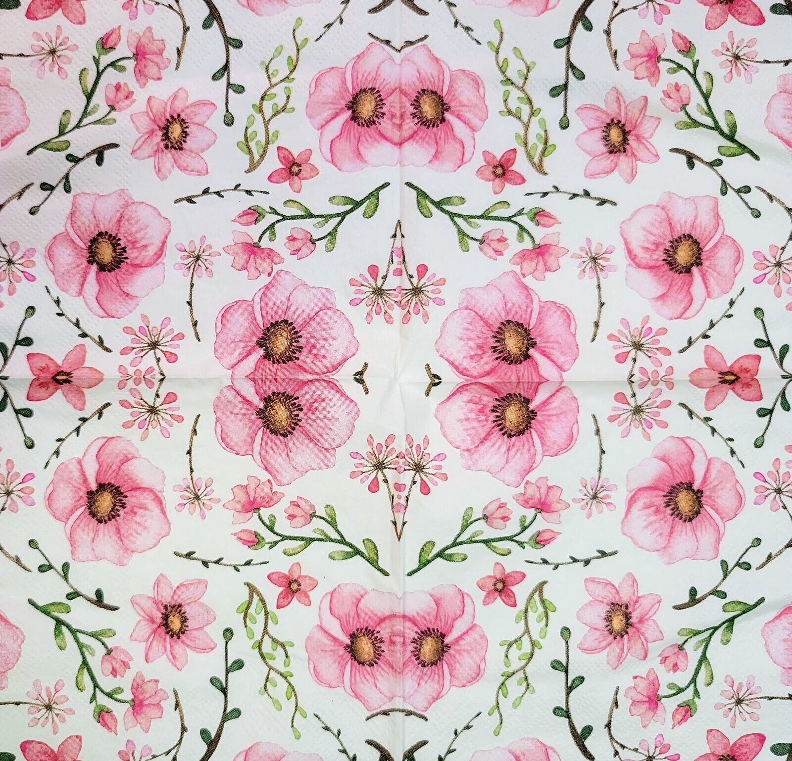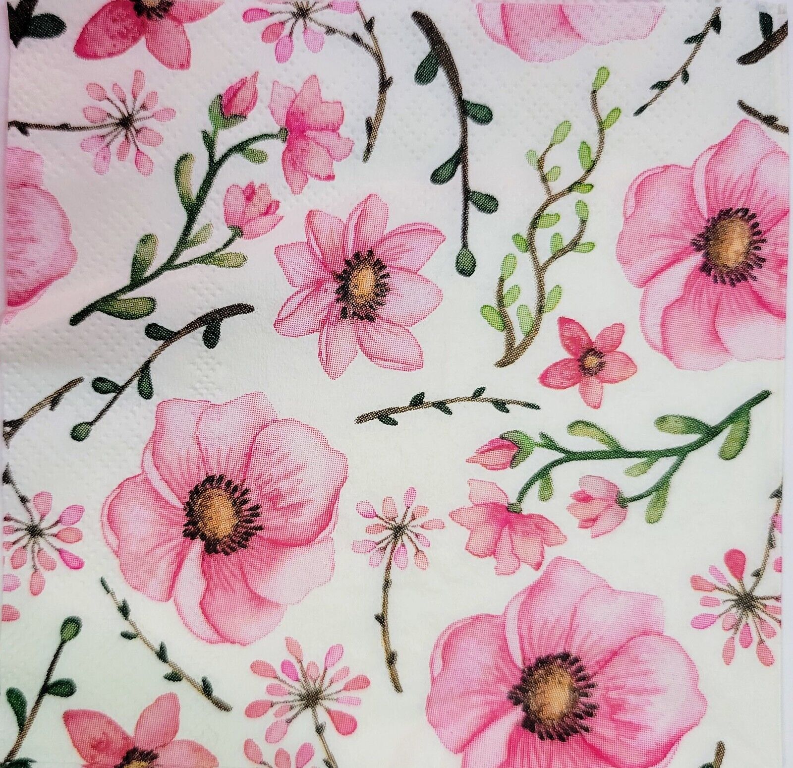 TWO Individual Paper Cocktail Decoupage Napkins - 2191 Burst of Pink Flowers