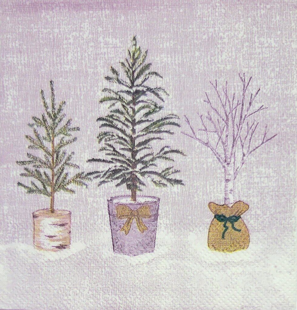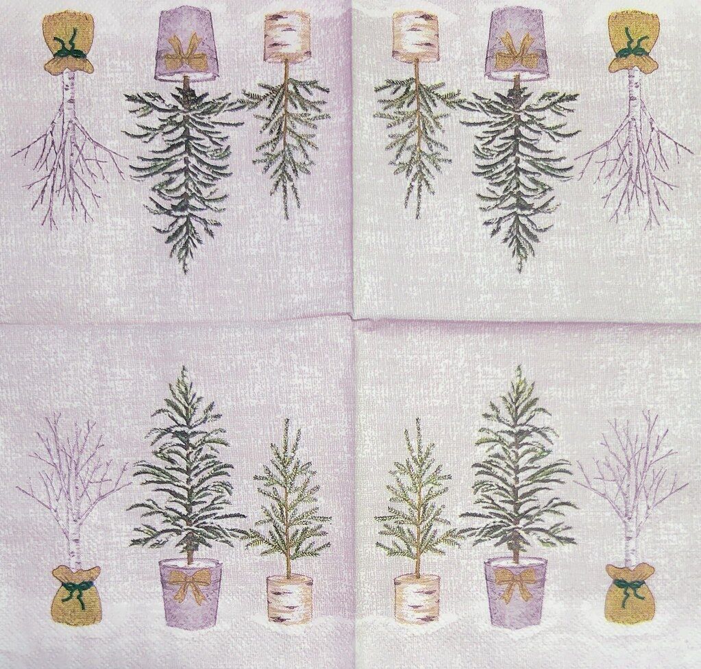 TWO Individual Paper Cocktail Decoupage Napkins- 2217 Potted Holiday Trees