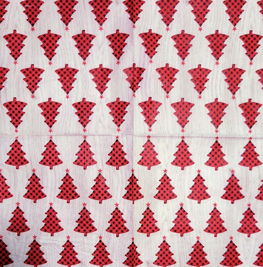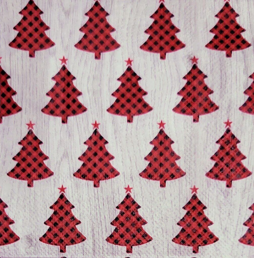 TWO Individual Paper Cocktail Decoupage Napkins - 2223 Red Check Christmas Trees