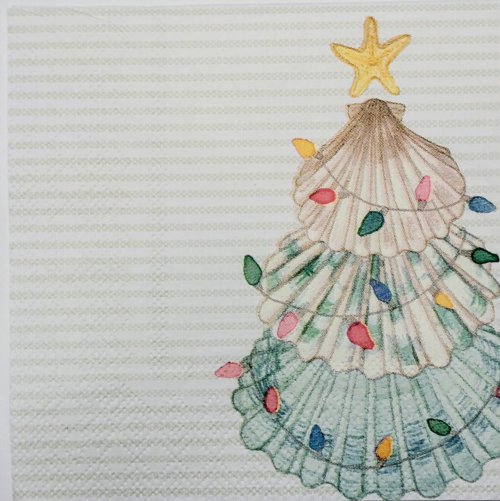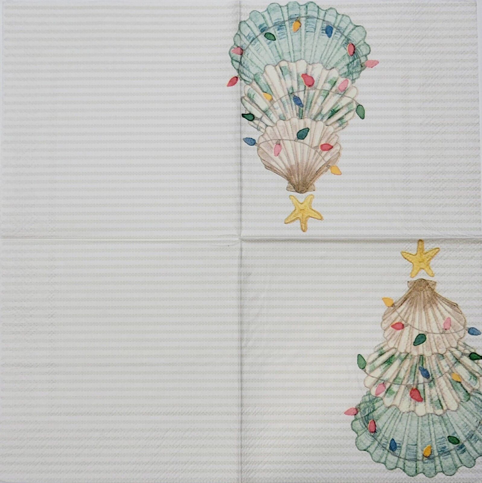 TWO Individual Paper Cocktail Decoupage Napkins - 2284 Christmas Tree Shells