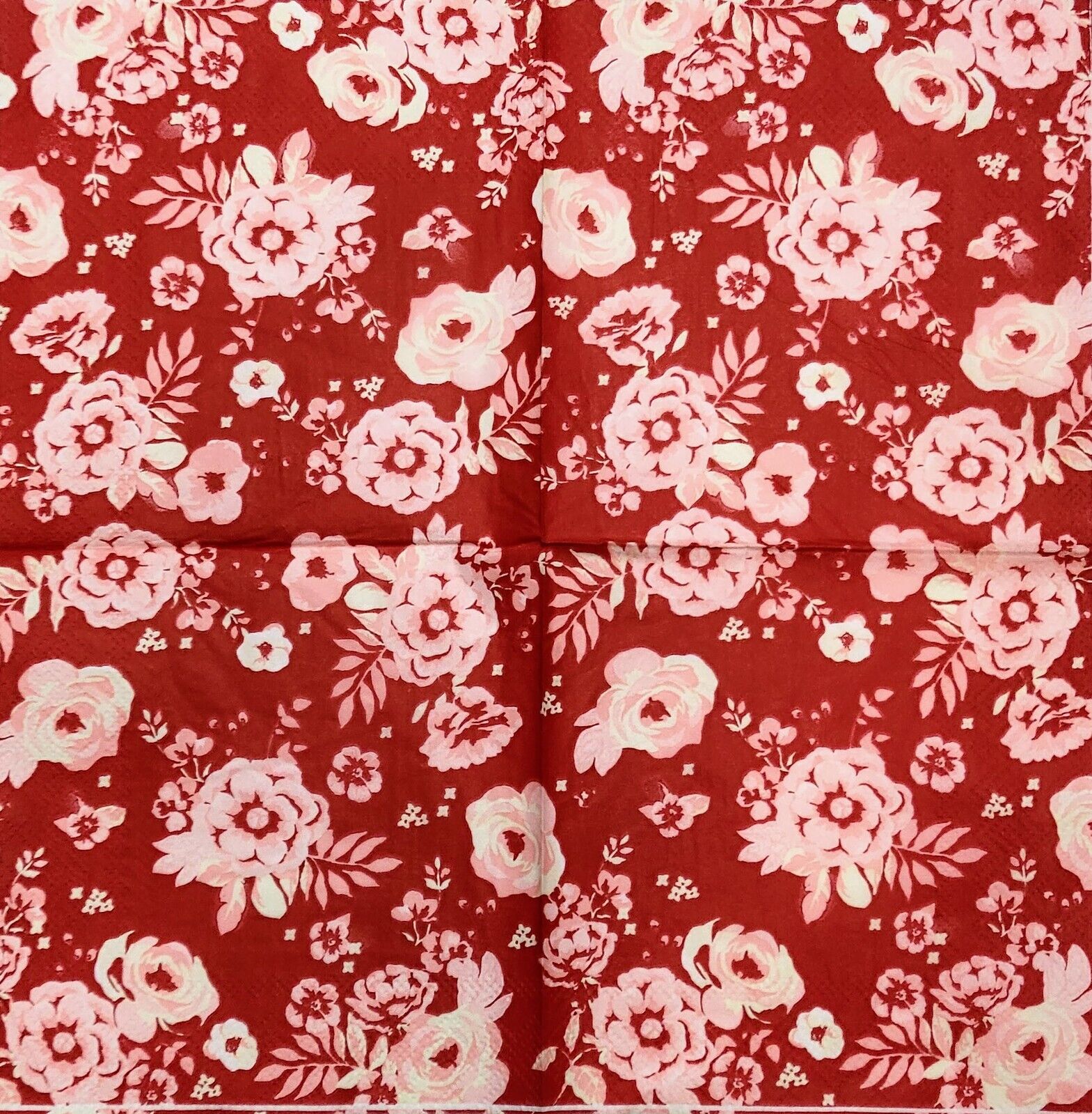 TWO Individual Paper Cocktail Decoupage Napkins - 2298 Red Florals