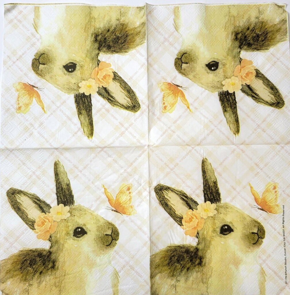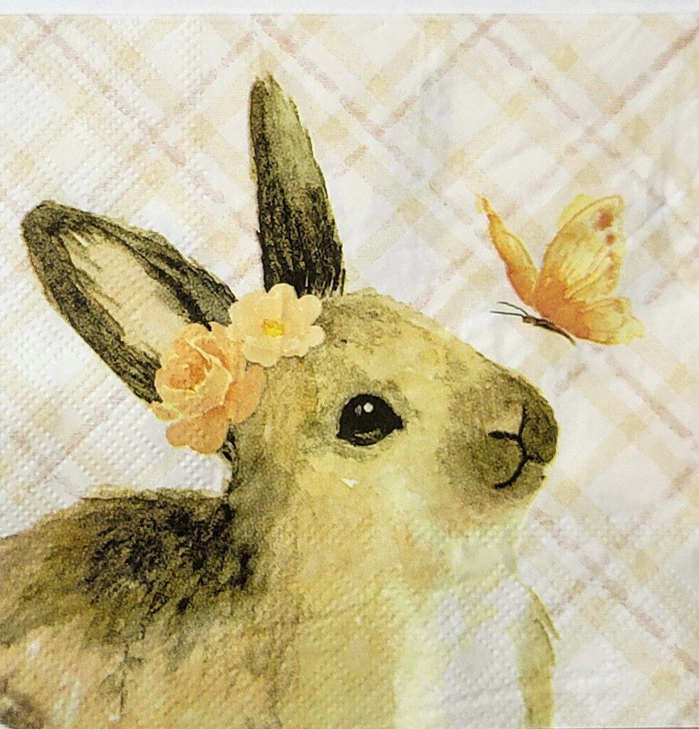 TWO Individual Paper Cocktail Decoupage Napkins- 2326 Bunny and Butterfly Friend