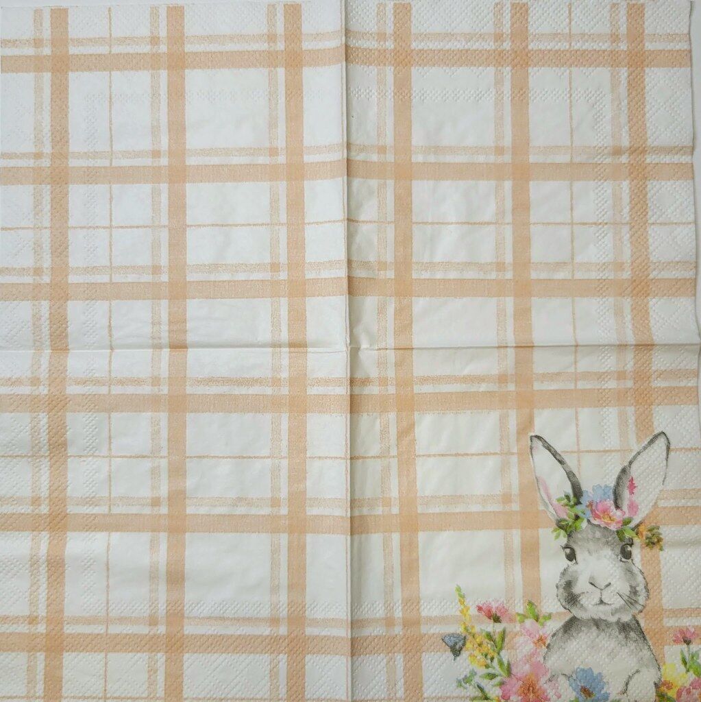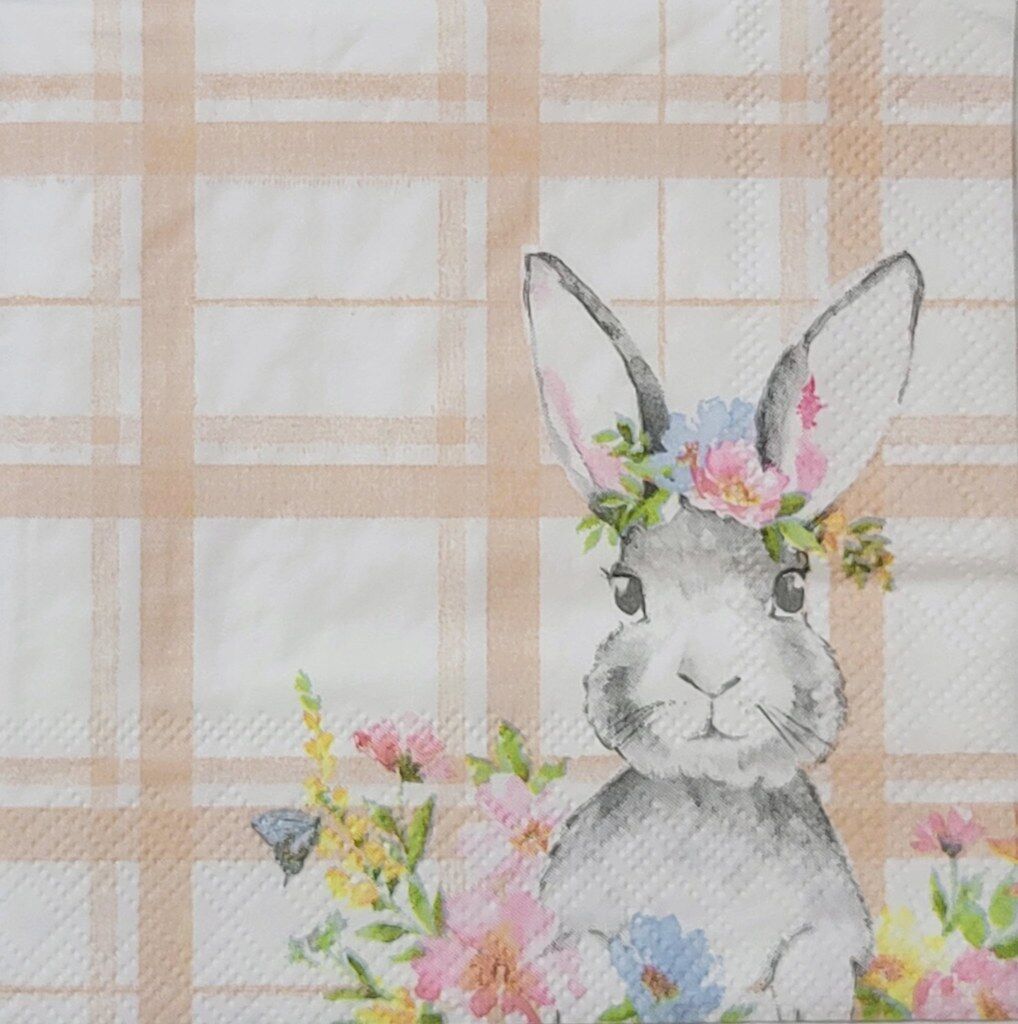 TWO Individual Paper Cocktail Decoupage Napkins - 2329 Bunny in Flower Patch