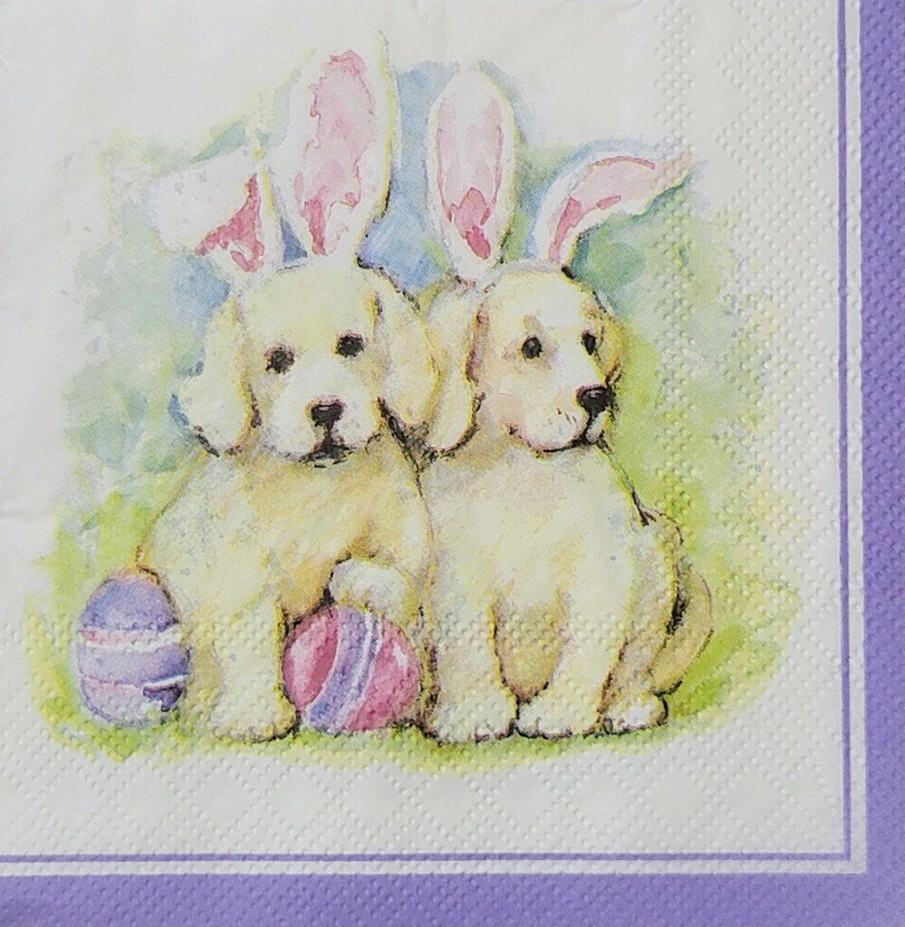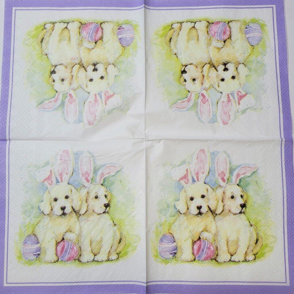 TWO Individual Paper Cocktail Decoupage Napkins - 2330 Easter Doggy Bunnies