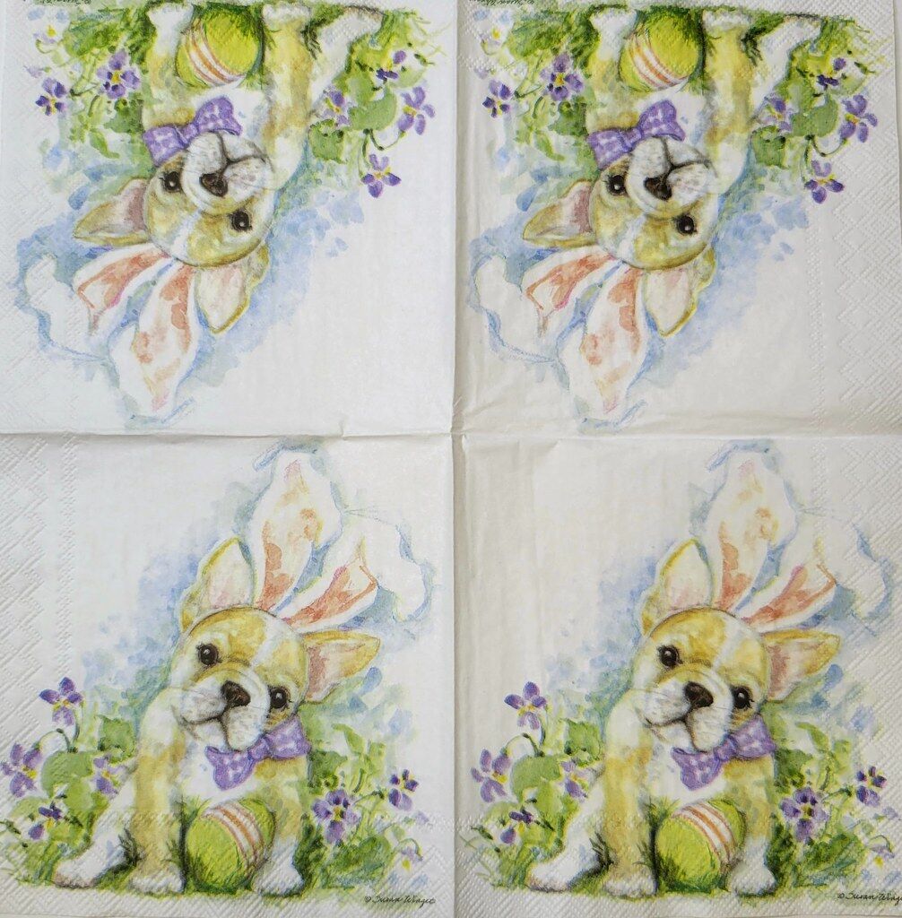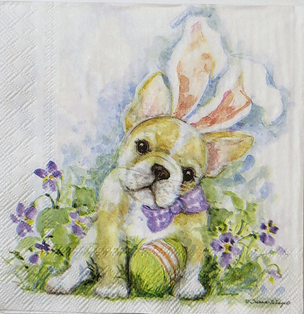 TWO Individual Paper Cocktail Decoupage Napkins - 2330 Easter French Bulldog