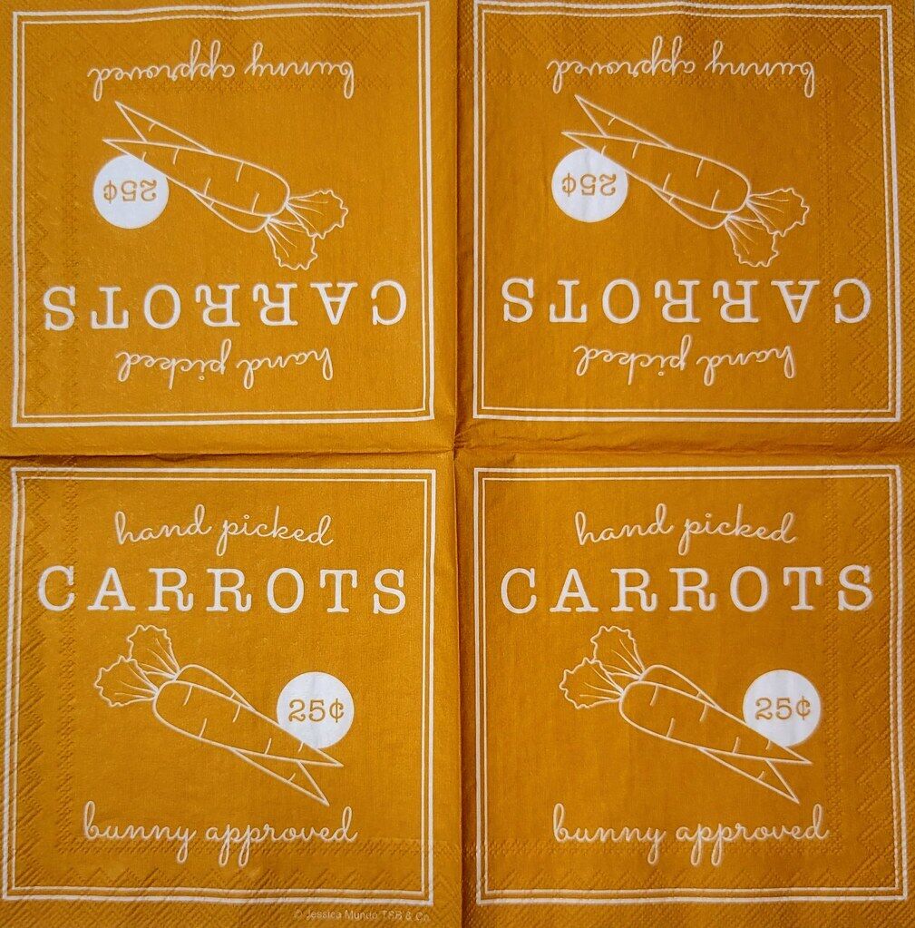 TWO Individual Paper Cocktail Decoupage Napkins - 2335 Hand Picked Carrots